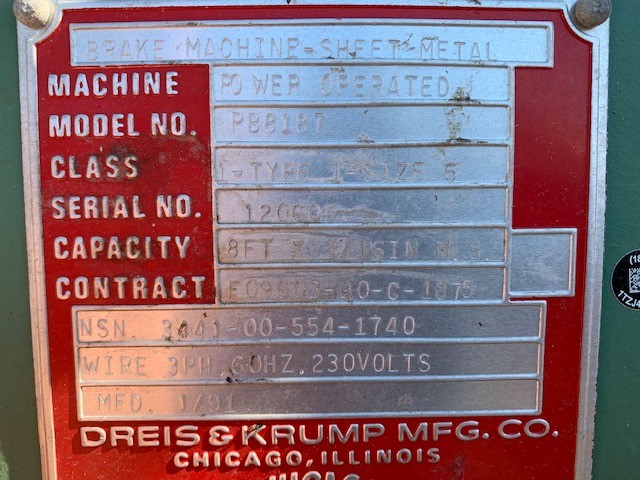 CHICAGO 8' X 3/16" POWERED STRAIGHT BRAKE